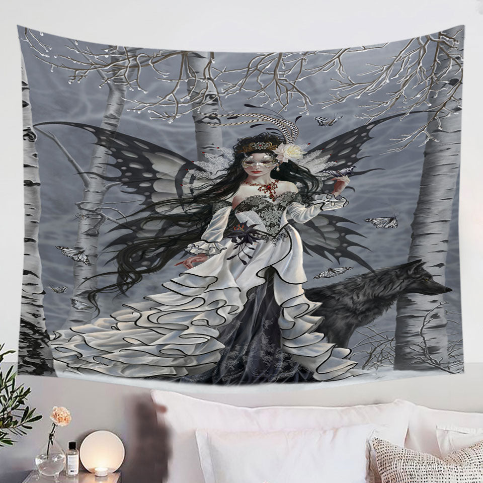 Fantasy Art Winter Fairy and Her Wolf Tapestry