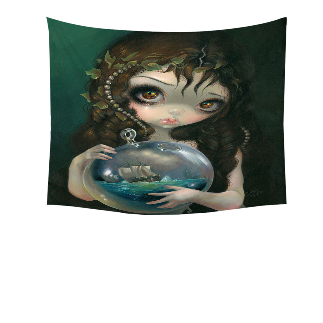 Fine Art Alchemical Girl Microcosm Seascape Ship Tapestry