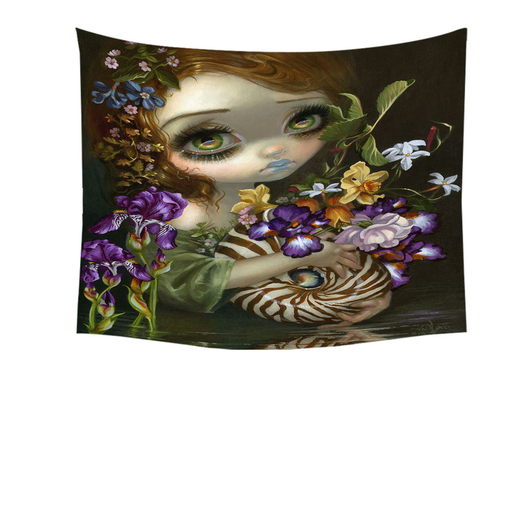 Fine Art Beautiful Maiden and Nautilus Bouquet Tapestry