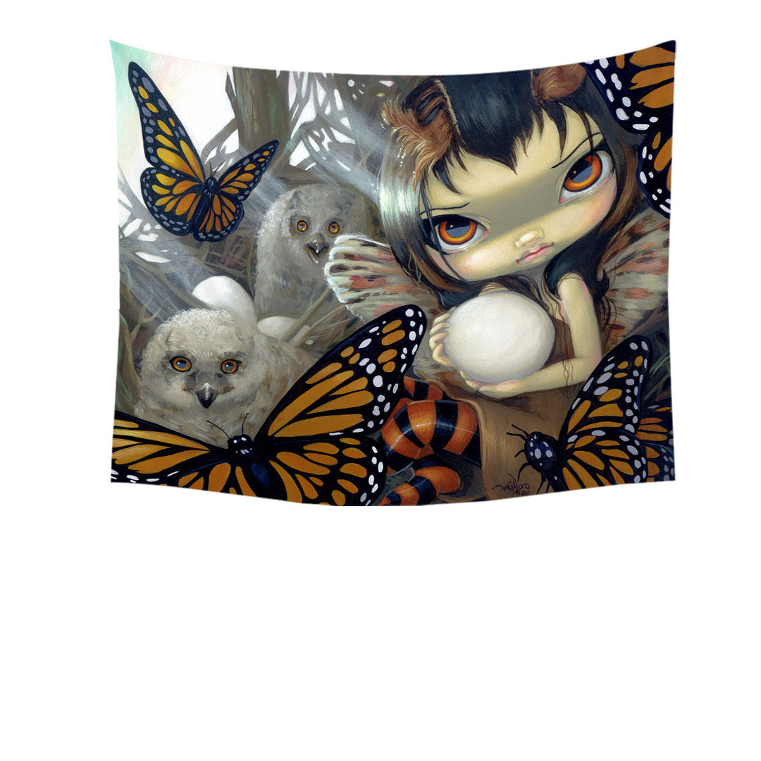 The Owl Fairy Owlyn in the Nest with Butterflies Tapestry