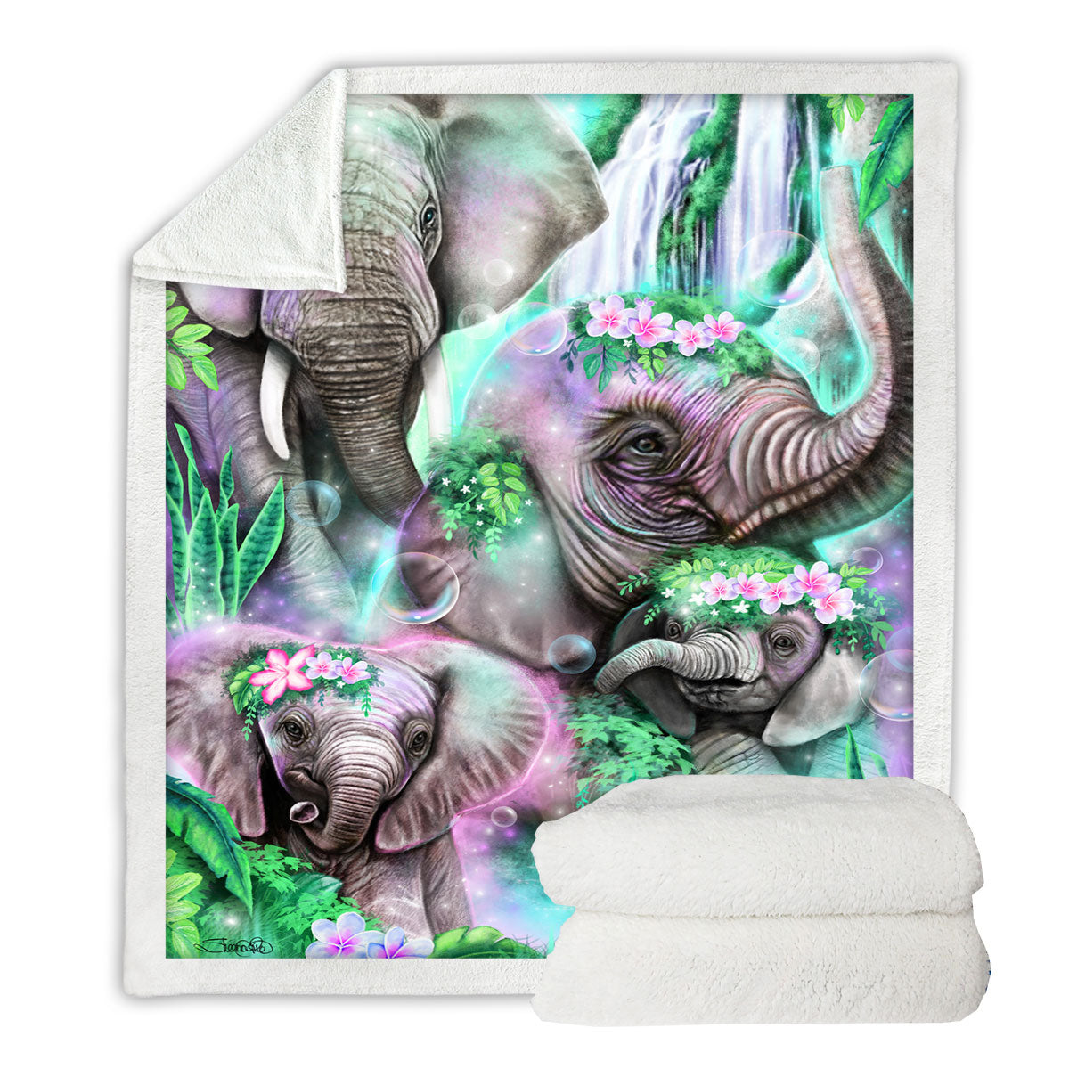 Animal Painting Day Dream Elephants Lagoon Throw Blanket