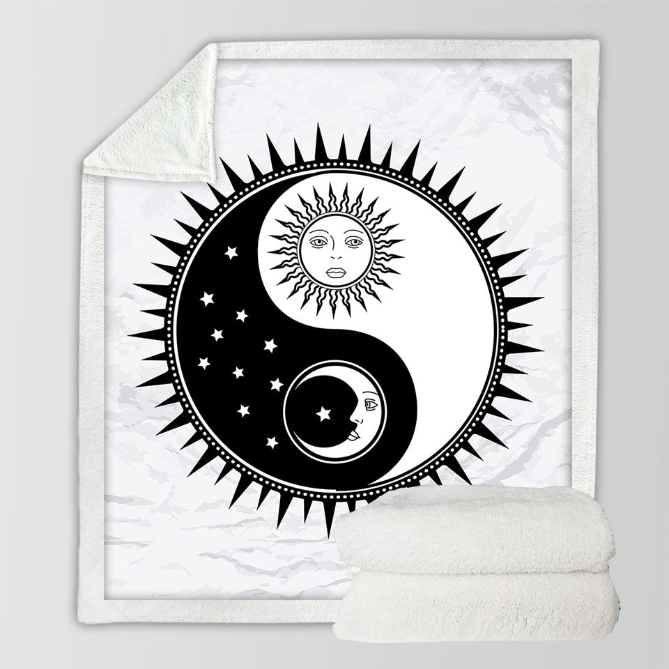 Black and White Sun and Moon Yin and Yang Throw Blanket