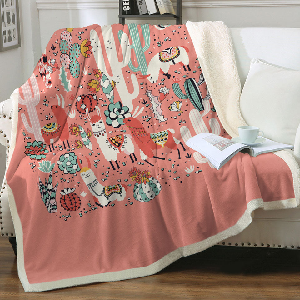 Cactuses and Llamas in South America Throw Blanket