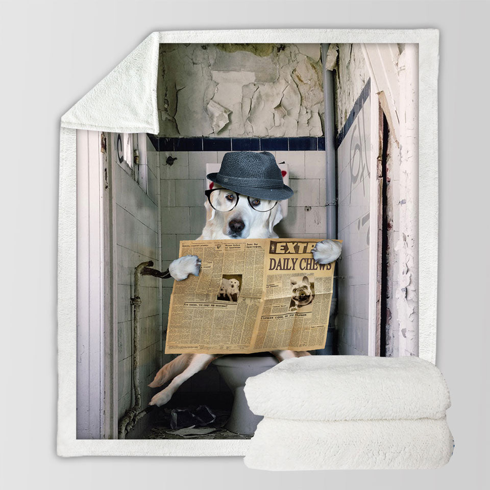 Cool Funny Golden Retriever Dog in Toilet Throw Blanket