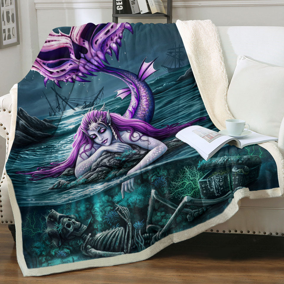 Cool Scary Ocean Art Skeleton and Mermaid Throw Blanket