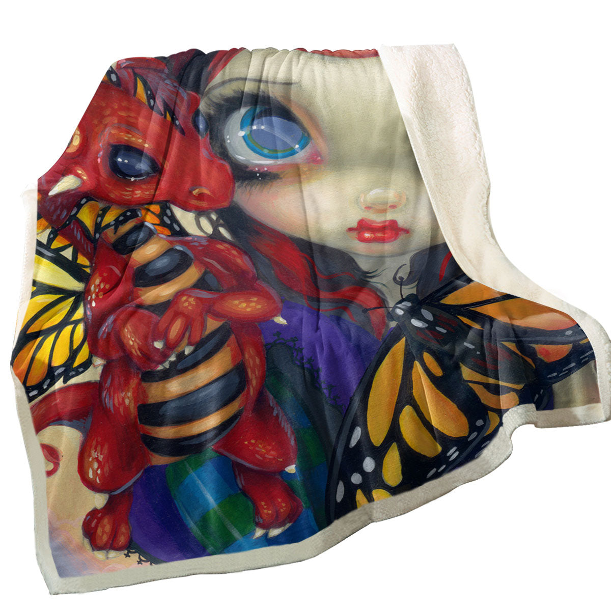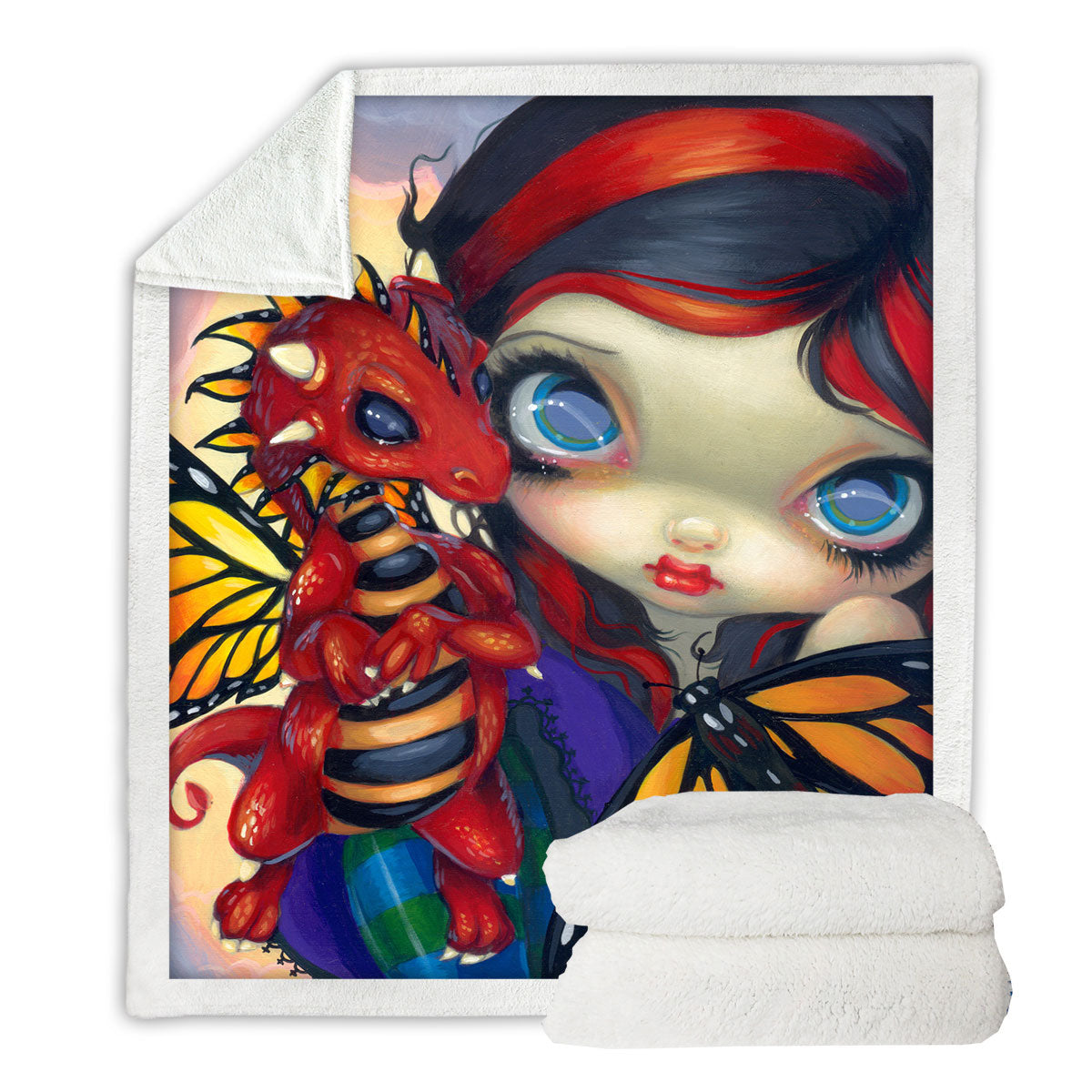 Cute Blankets Art Darling Dragonling and Butterfly Fairy