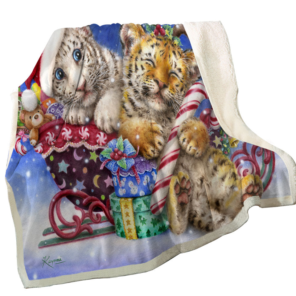Cute Christmas Baby Tigers with Presents Sleigh Throw Blanket