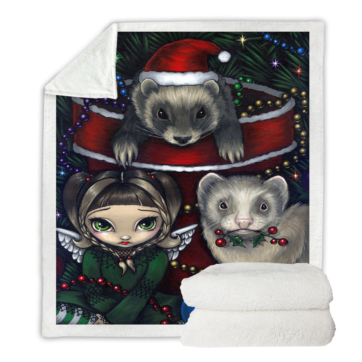Cute Fairy and Christmas Ferrets Throw Blanket