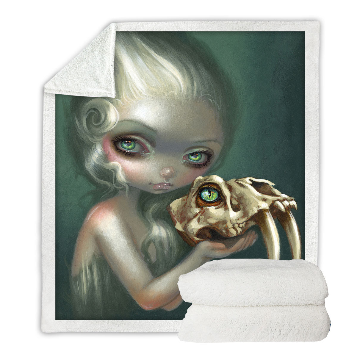 Dark Art Girl Holds Resurrected Saber Toothed Cat Throw Blanket