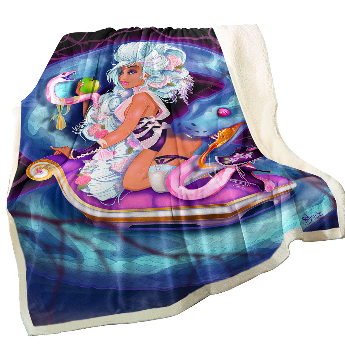 Dark Background Sexy Woman the Charming Snake Throw Blanket