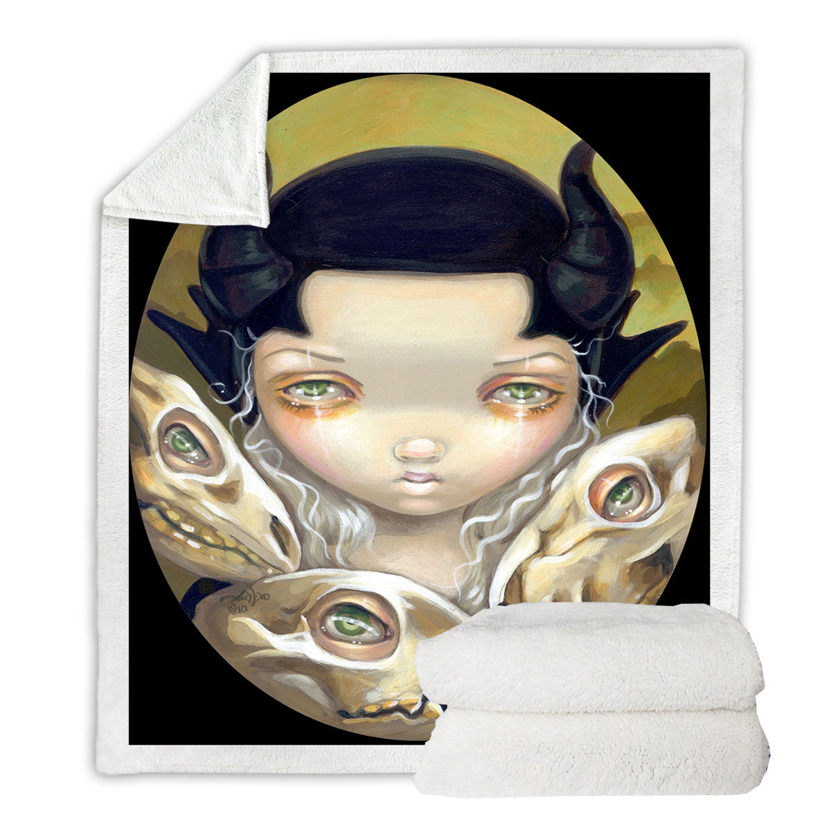 Dark Medieval Art Girl and Skulls Delicate Bones Throw Blanket