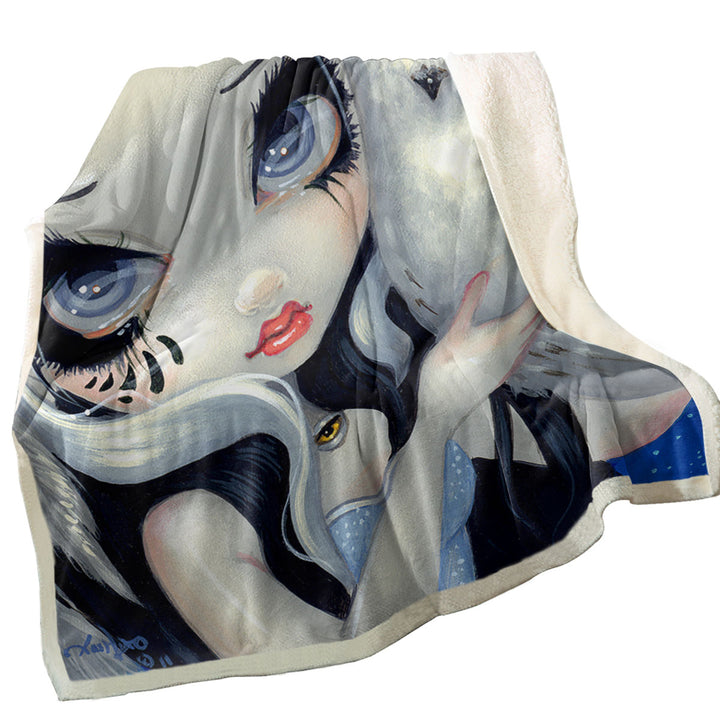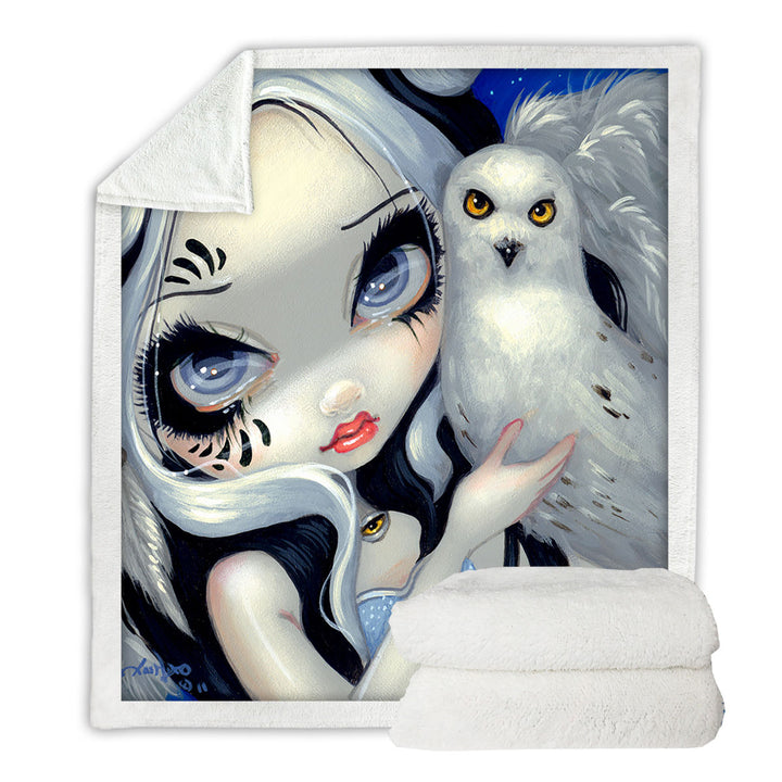 Faces of Faery #149 Goth Girl with Her White Owl Throw Blanket