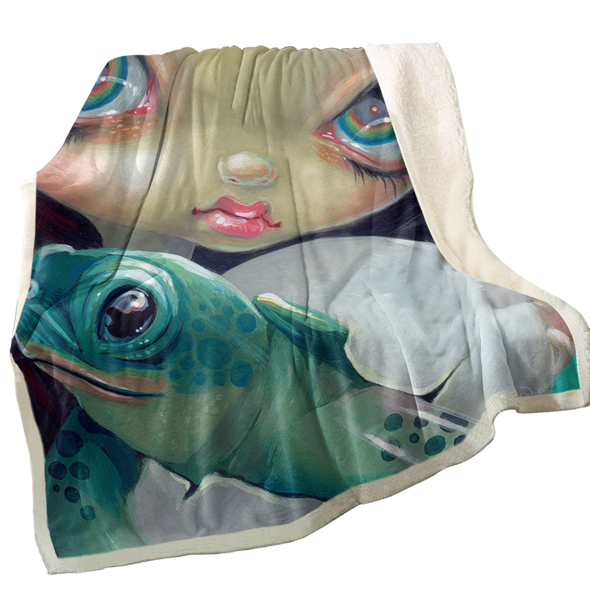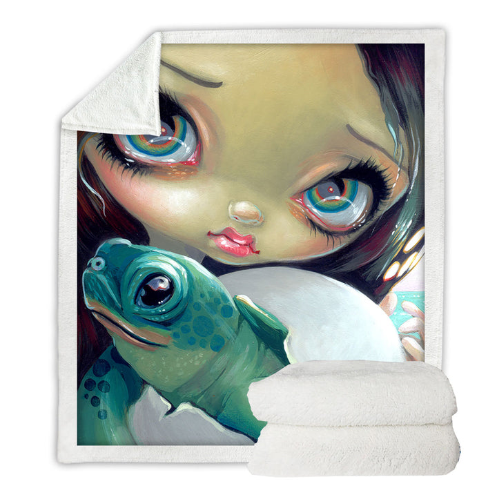 Faces of Faery #164 Cute Girl with Baby Turtle Throw Blanket