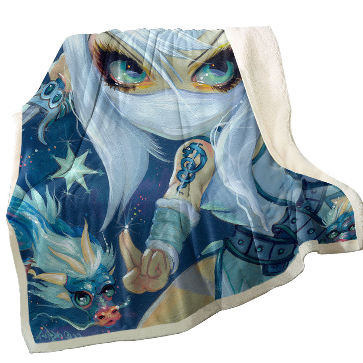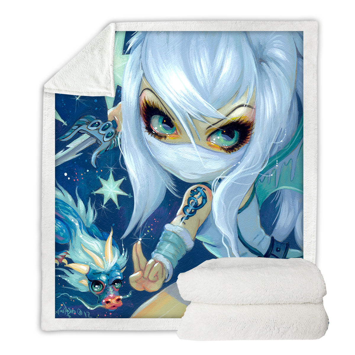 Faces of Faery #187 Ninja Girl and Star Dragon Throw Blanket