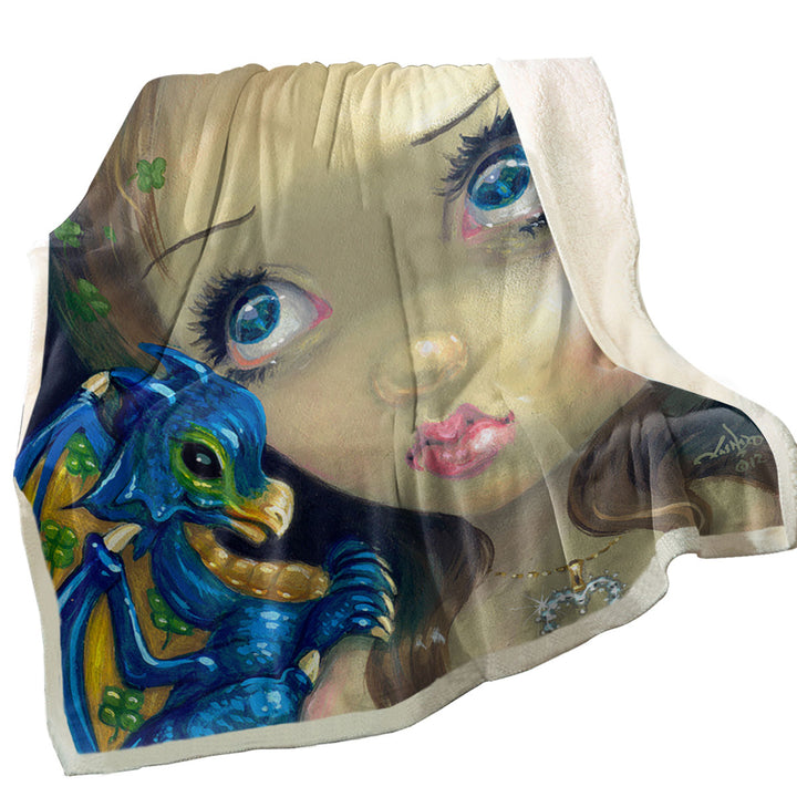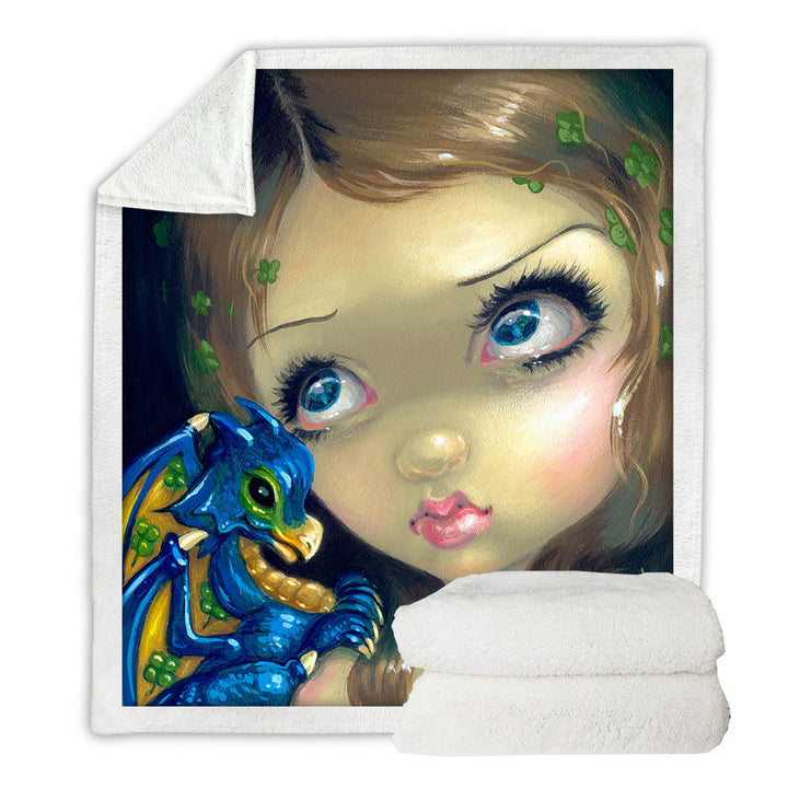 Faces of Faery #190 Clover Girl and Dragonling Throw Blanket