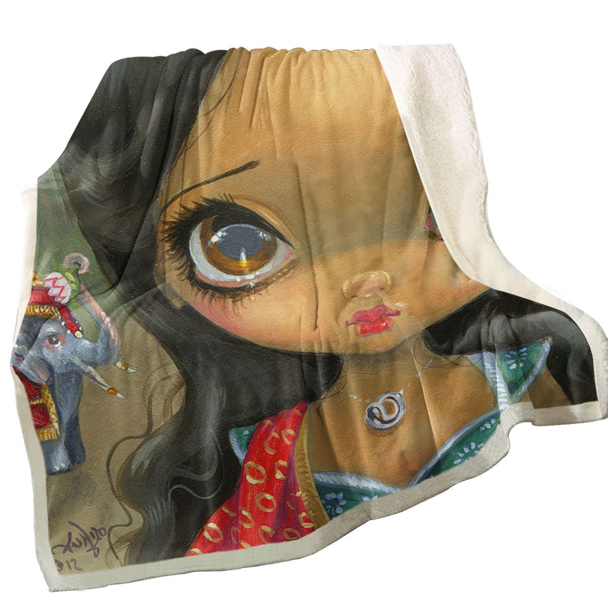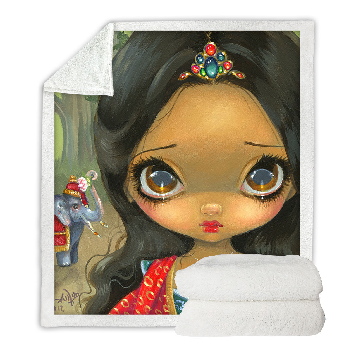 Faces of Faery #192 Indian Princess Girl and Elephant Throw Blanket