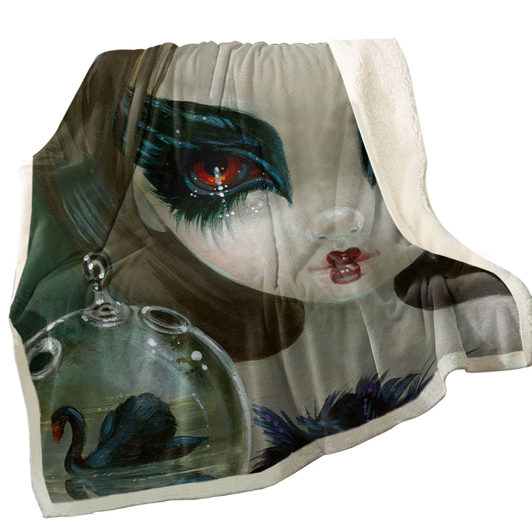 Faces of Faery #201 Black Swan Ballerina Girl Throw Blanket