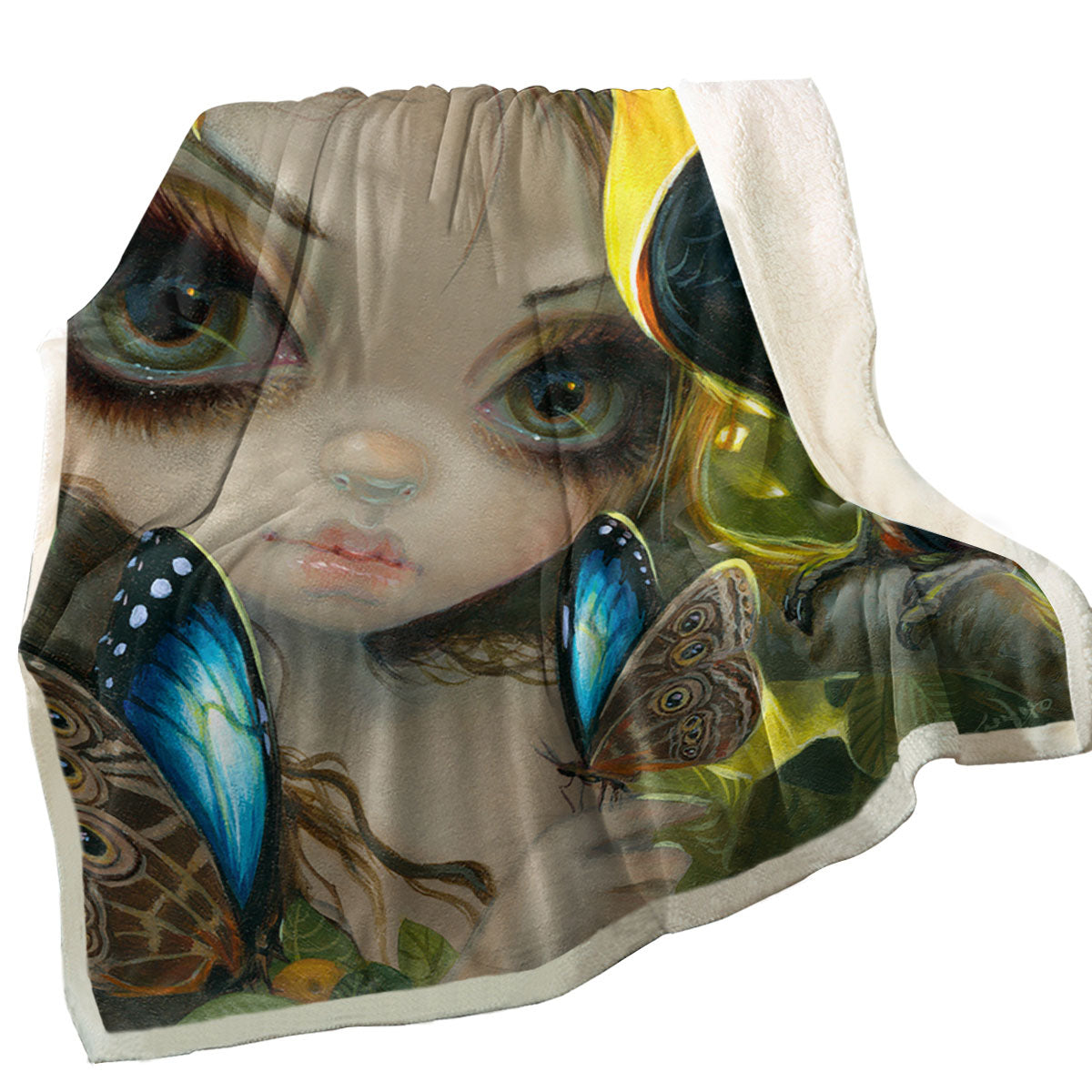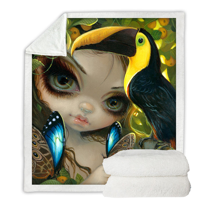 Faces of Faery #236 Tropical Girl and Her Toucan Throw Blanket