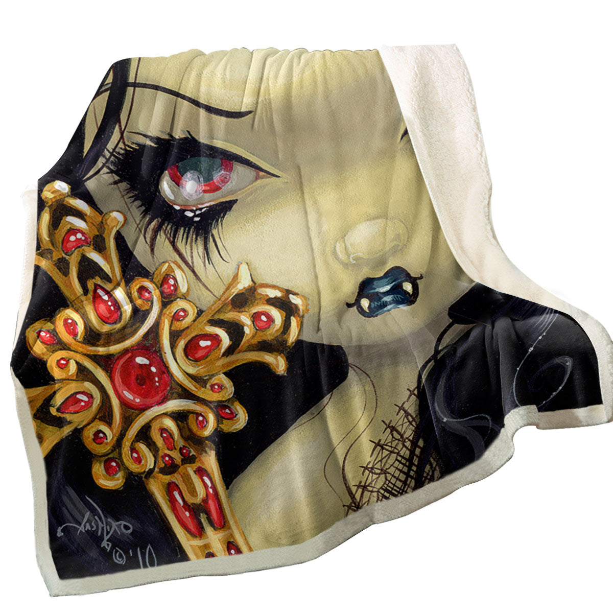 Faces of Faery _91 Beautiful Goth Girl with Cross Sherpa Blanket