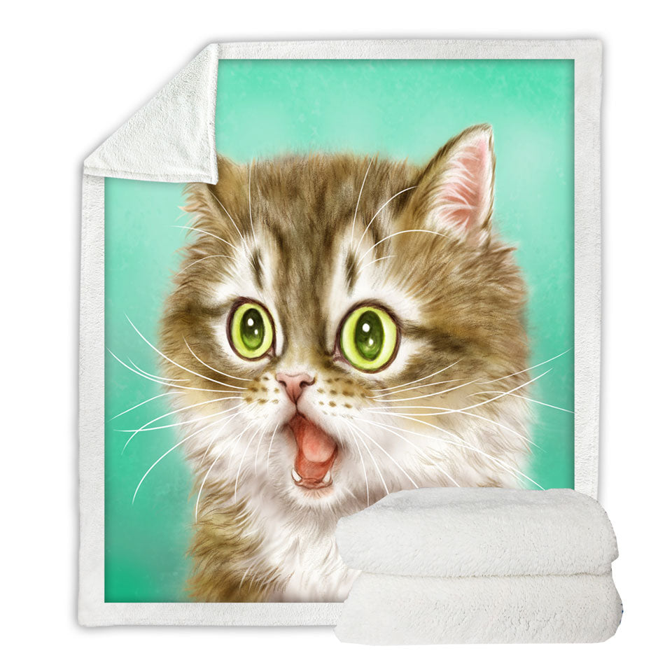 Funny Painted Cats Beautiful Kitty in Shock Throw Blanket