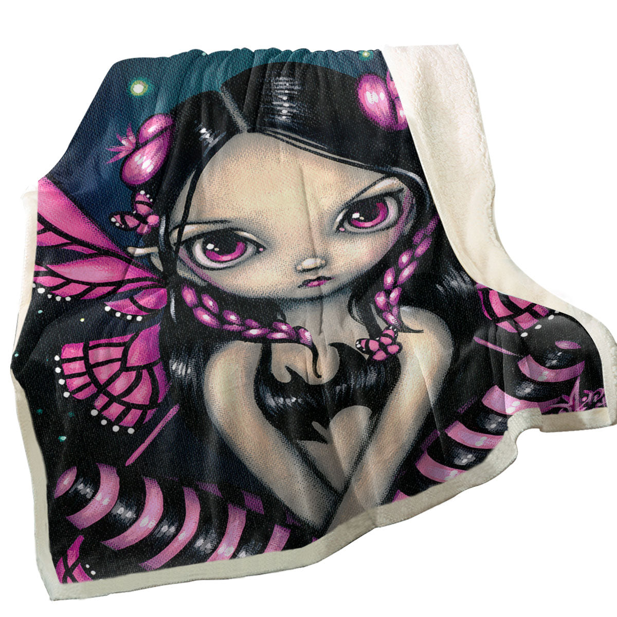 Girls Painting Pink Butterfly Fairy Throw Blanket