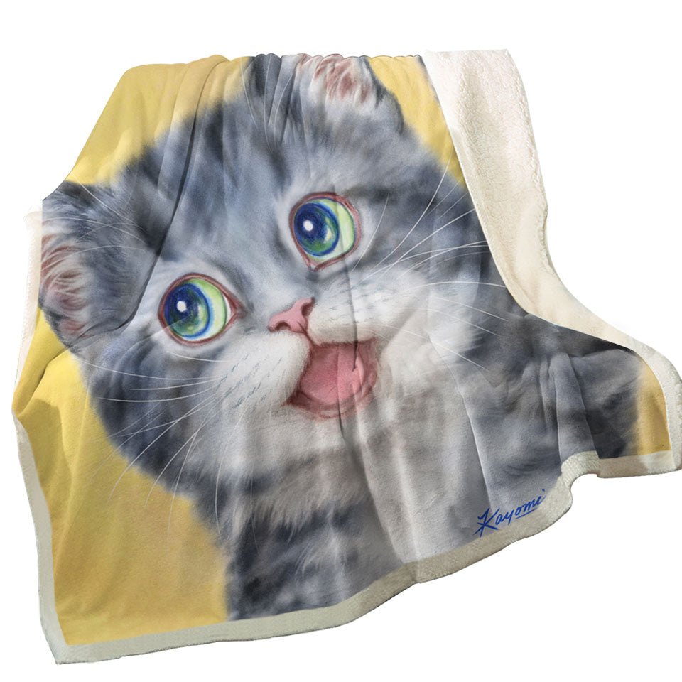 Hi Happy Cute Grey Kitty Cat Throw Blanket