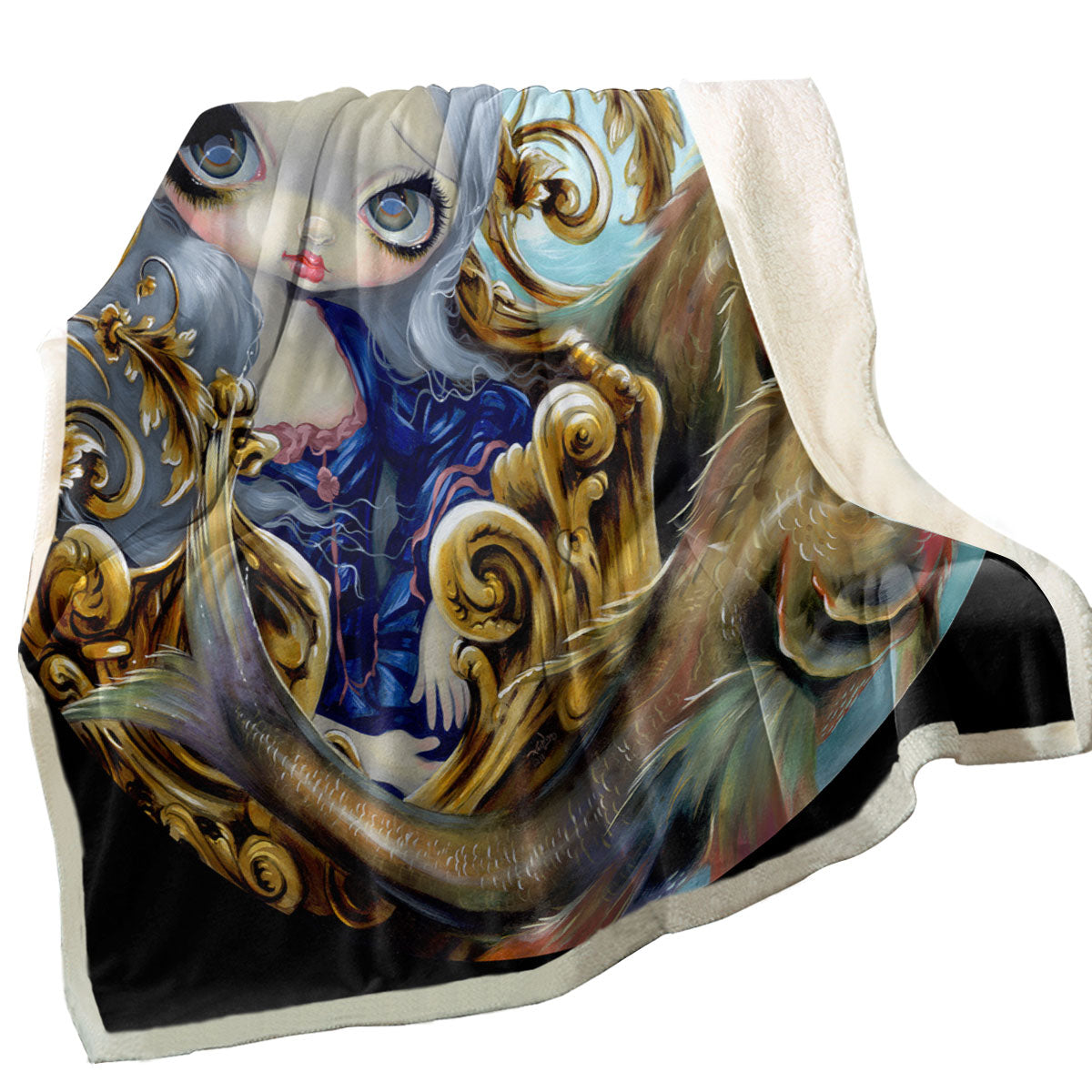 Sea Chariot Fish Transporting a Beautiful Maiden Throw Blanket