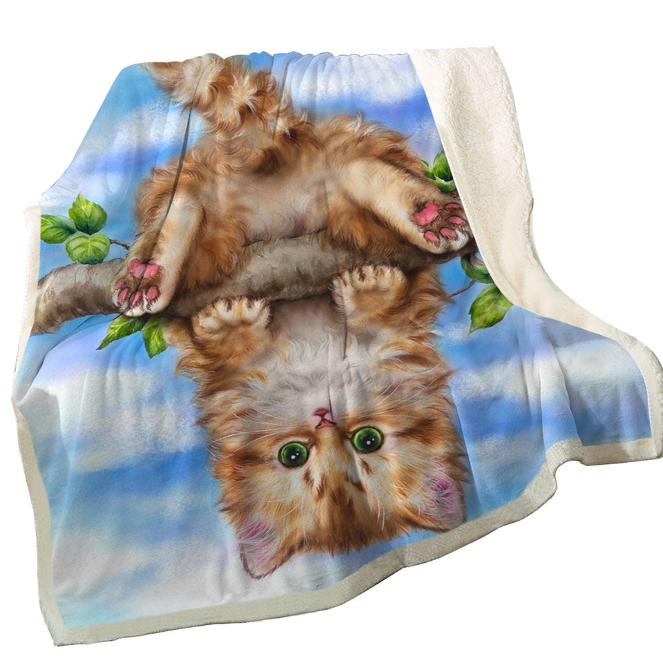 Whats Up Cute Funny Ginger Kitten on Branch Throw Blanket
