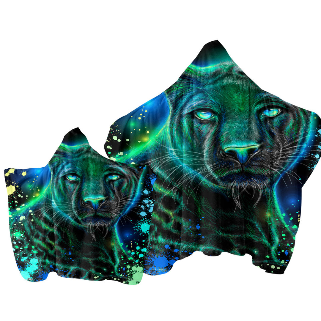 Printed beach towels with hoods are suitable for adults and kids, as they come in two sizes for you and your child.
