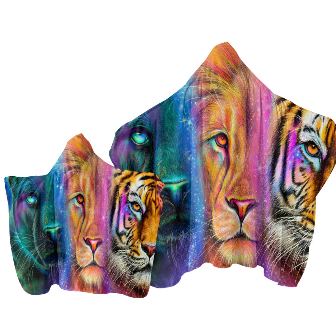 Tiger Lion Panther Faces of Nature Neon Big Cats Towel with Hood