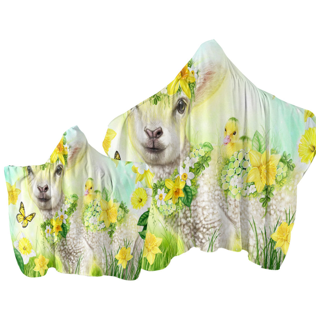 Yellow Spring Sweet Daffodil Lamb Towel with Hood