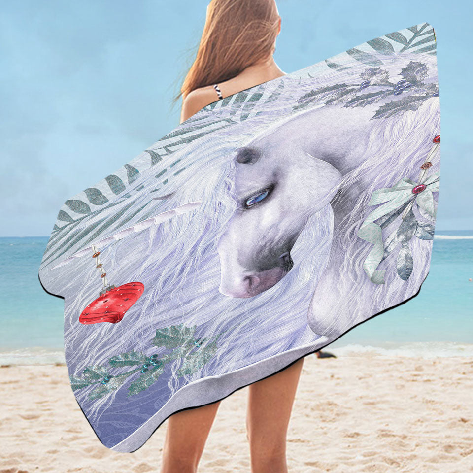 Blue Eyes Christmas White Unicorn Microfiber Beach Towel