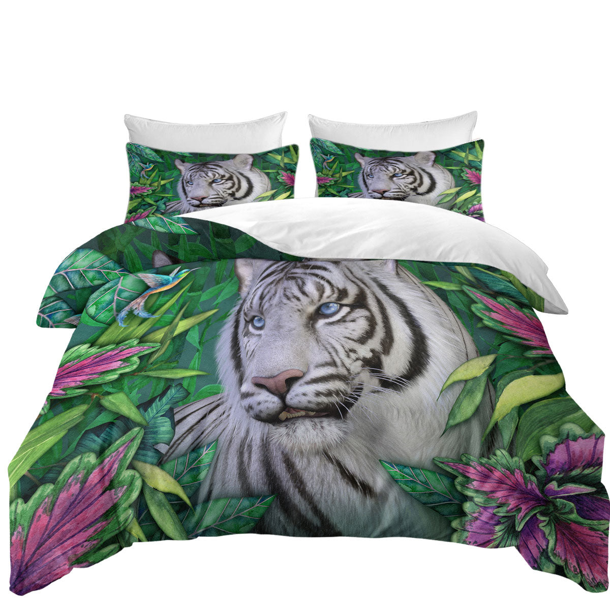 Wild Animals Art Tropical White Tiger Duvet Cover