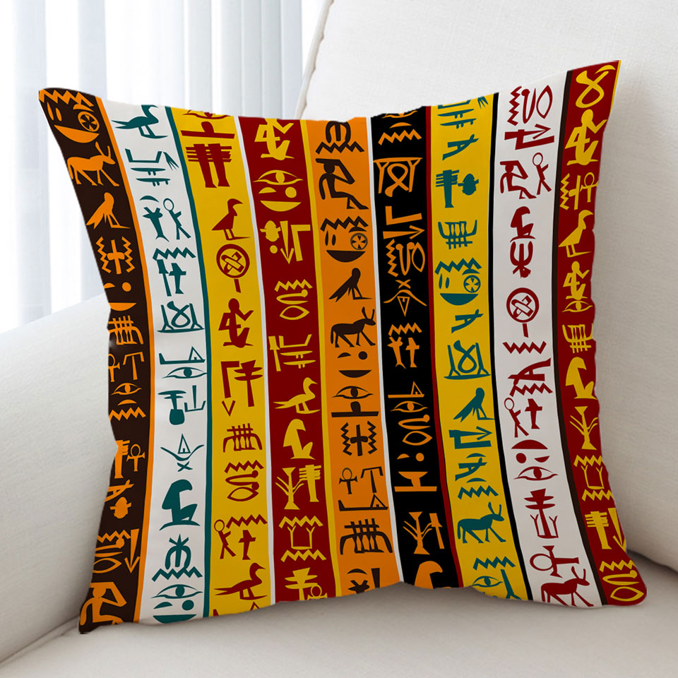 Cool Multi Colored Stripes Ancient Symbols Throw Pillow