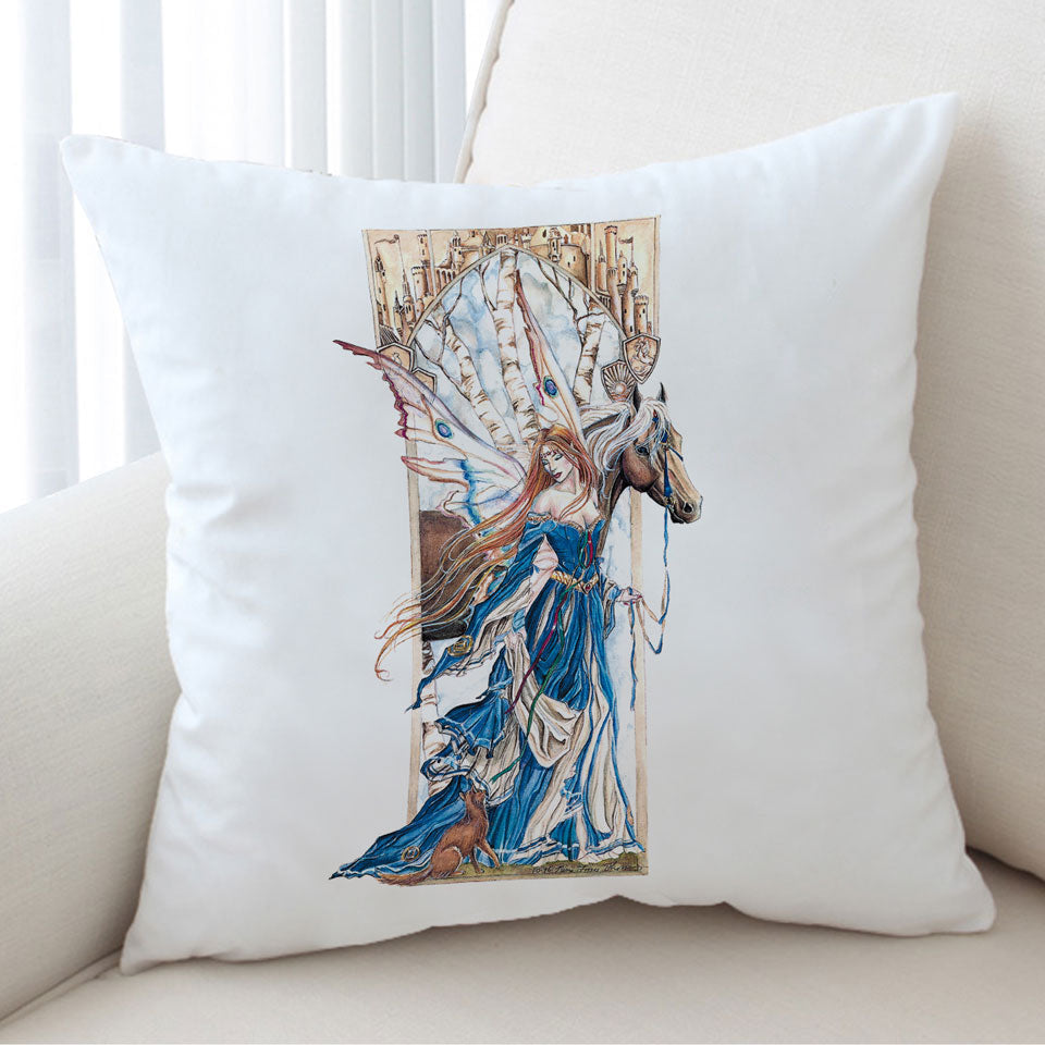 Fairytale Art Drawing Serenity Fairy and Horse Throw Pillow