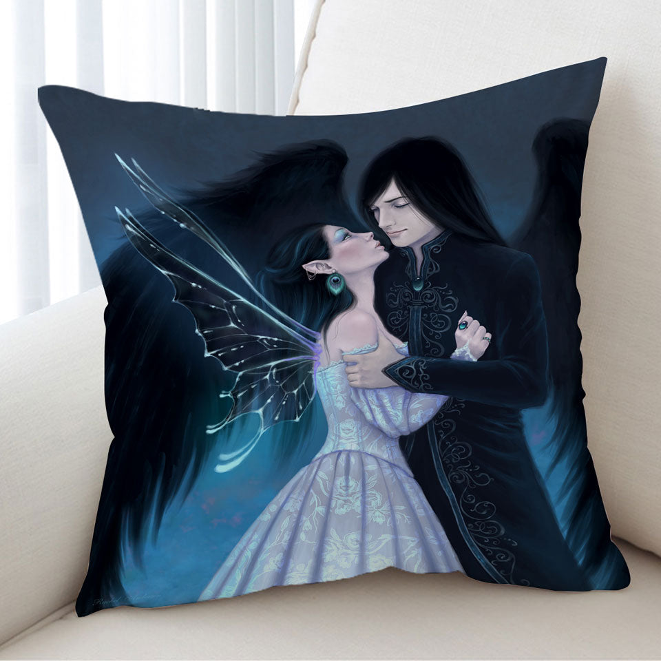 Fantasy Art Lovers Dark Angel and Sapphire Fairy Throw Pillow
