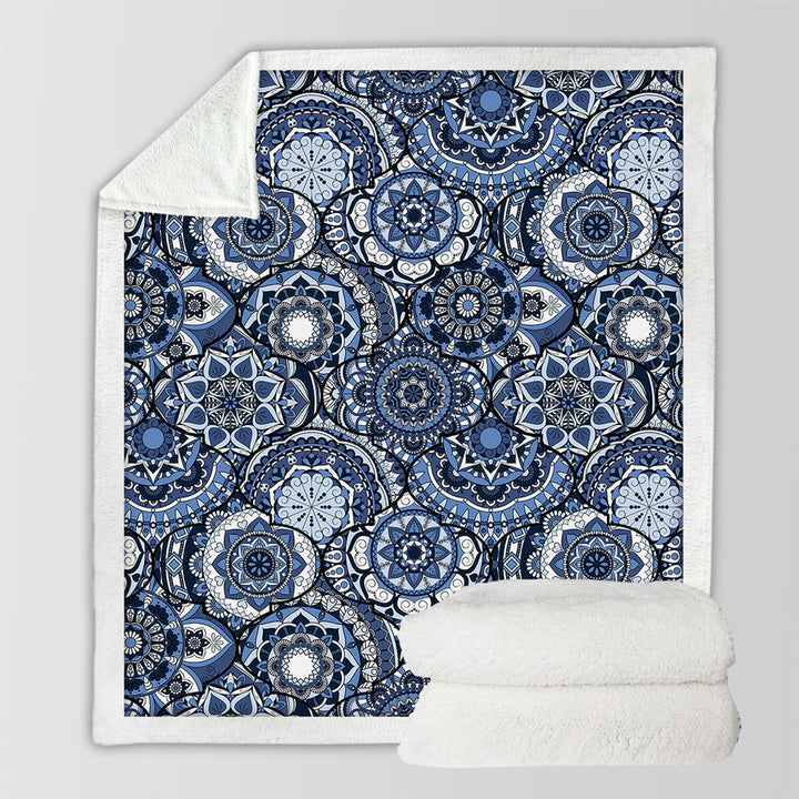 A Pile of Blue Oriental Mandalas Throw Blanket