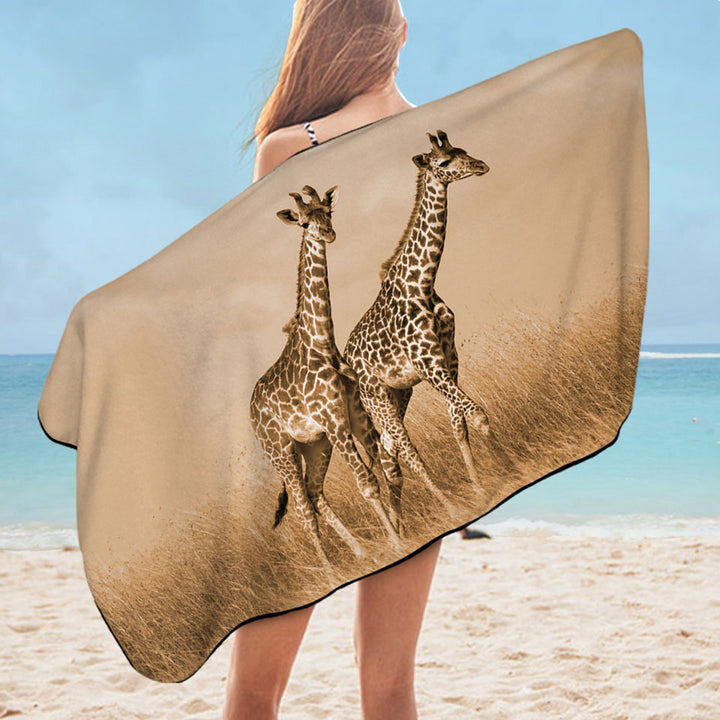 African Wildlife Wild Giraffes Microfiber Beach Towel