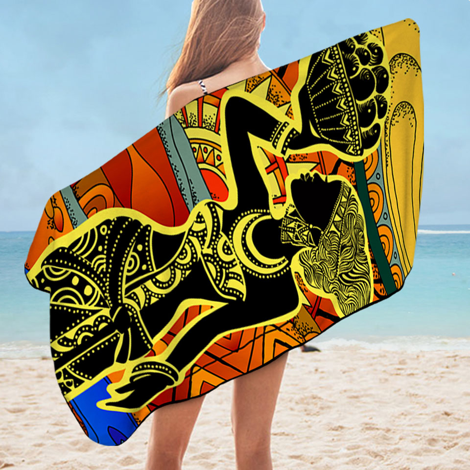 African Woman in Black and Yellow Microfiber Beach Towel