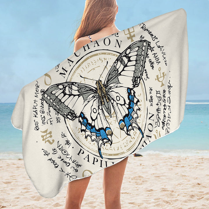 Ancient Symbols Papilio Machaon Butterfly Microfiber Beach Towel