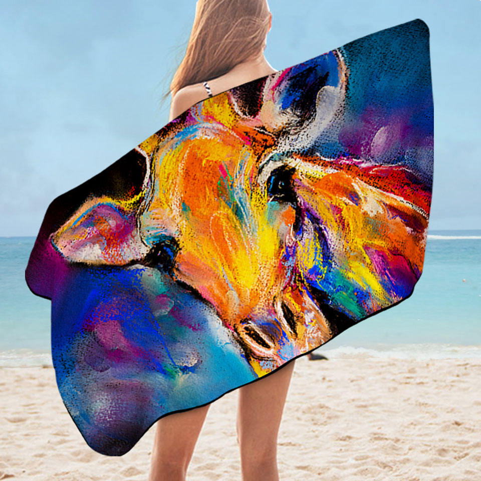 Animal Art Painting Giraffe Microfiber Beach Towel