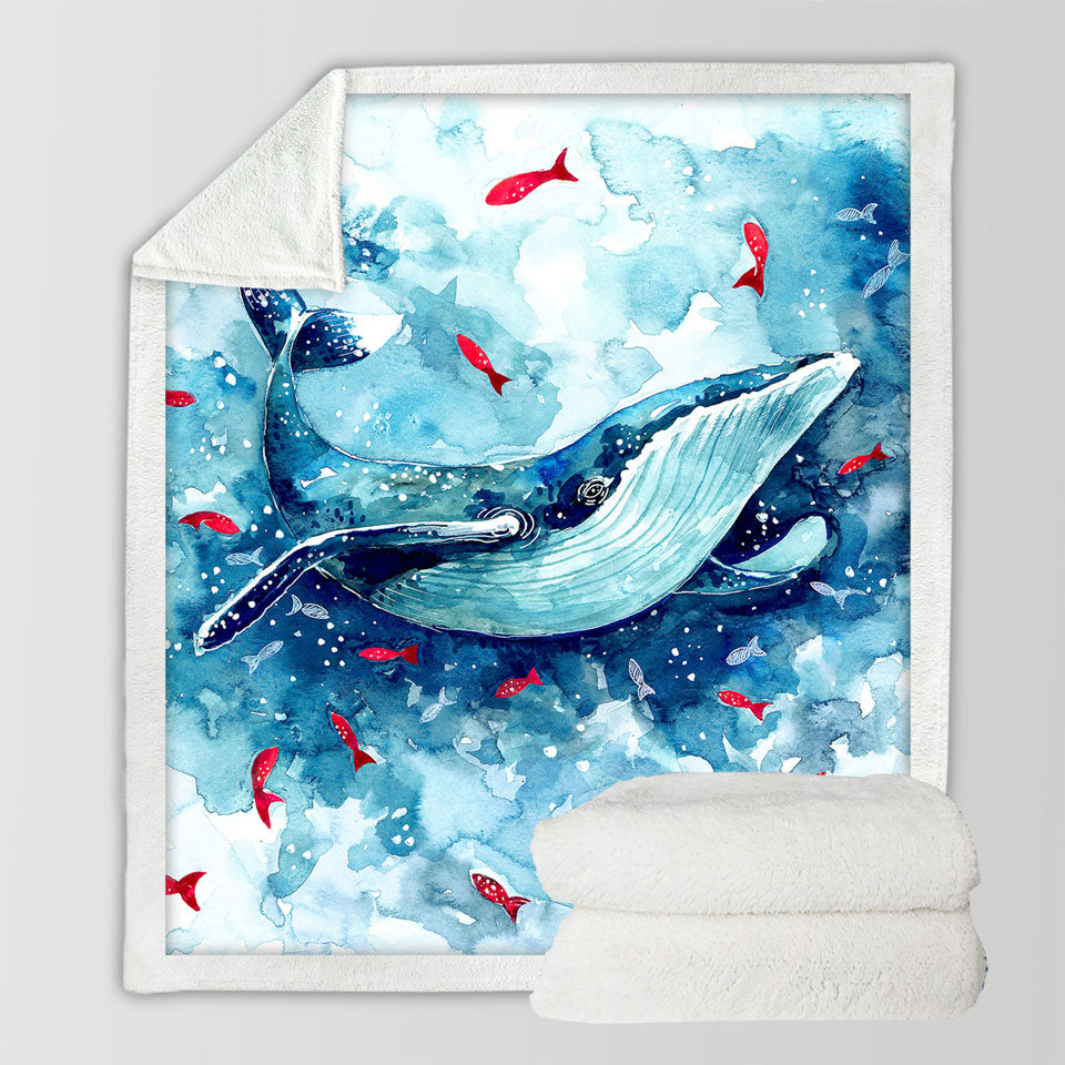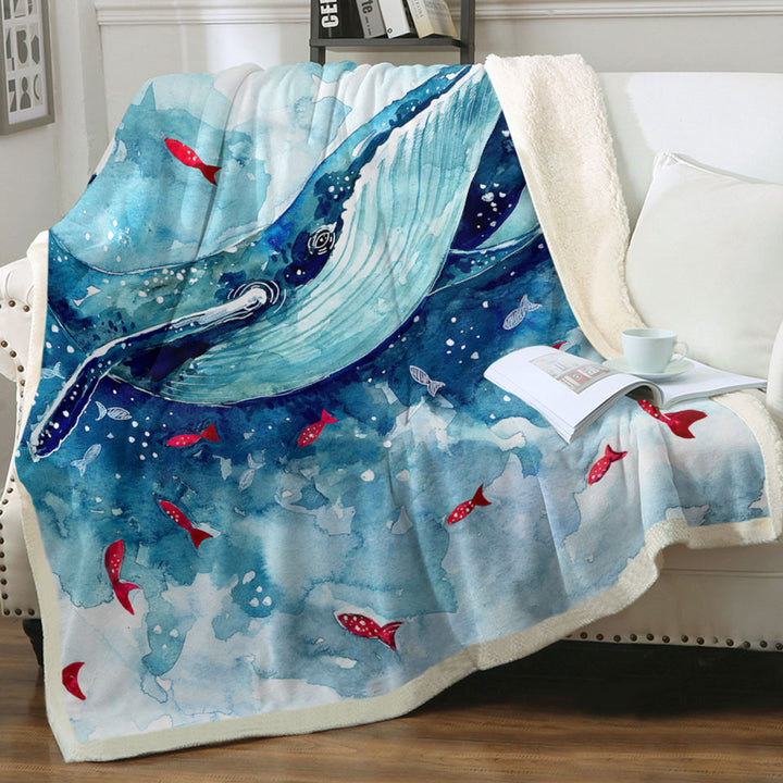 Art Painting Fish and Whale Throw Blanket