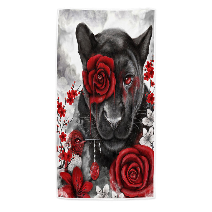 Art Painting Ruby Rose Panther and Hummingbird Microfiber Beach Towel