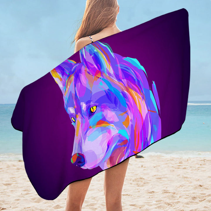 Artistic Purple Wolf Microfiber Beach Towel