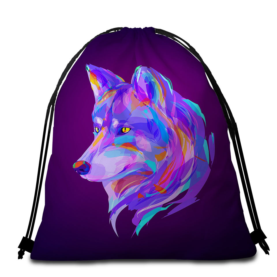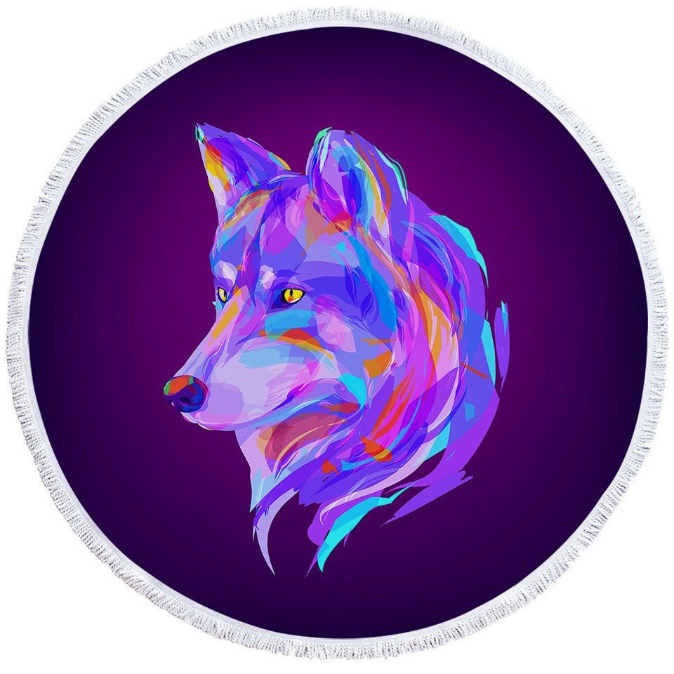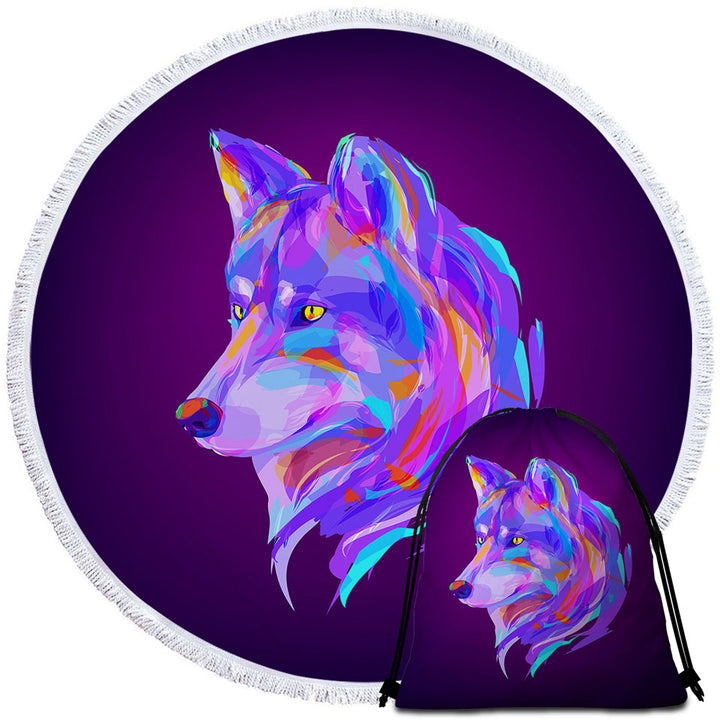 Artistic Purple Wolf Round Beach Towel