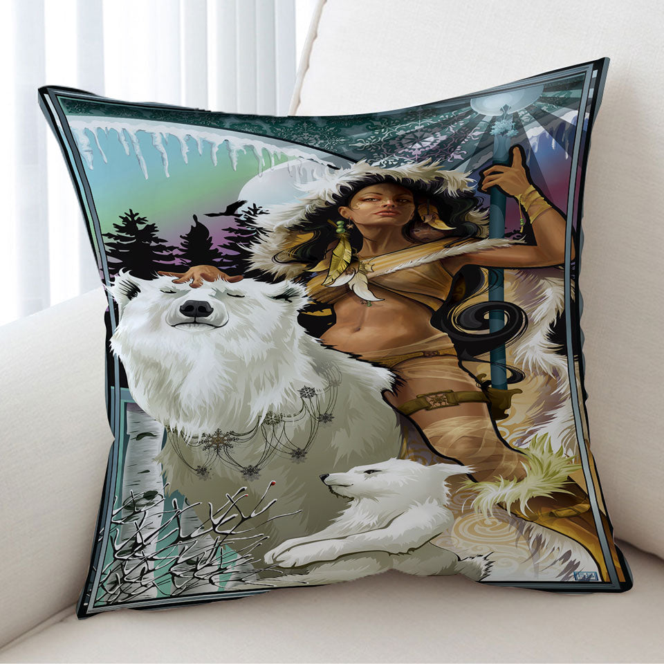 Attractive Hunter Lady with Her Bears Throw Pillow