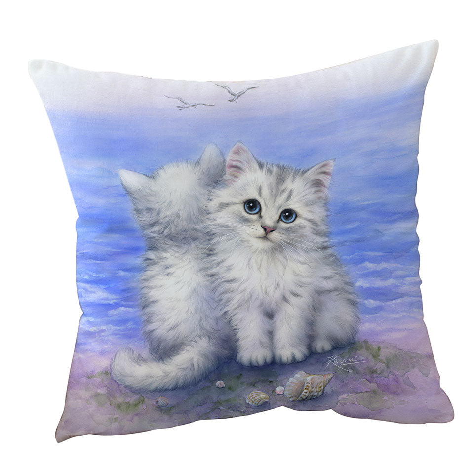 Beautiful Cats Art First Date White Grey Kittens Throw Pillow