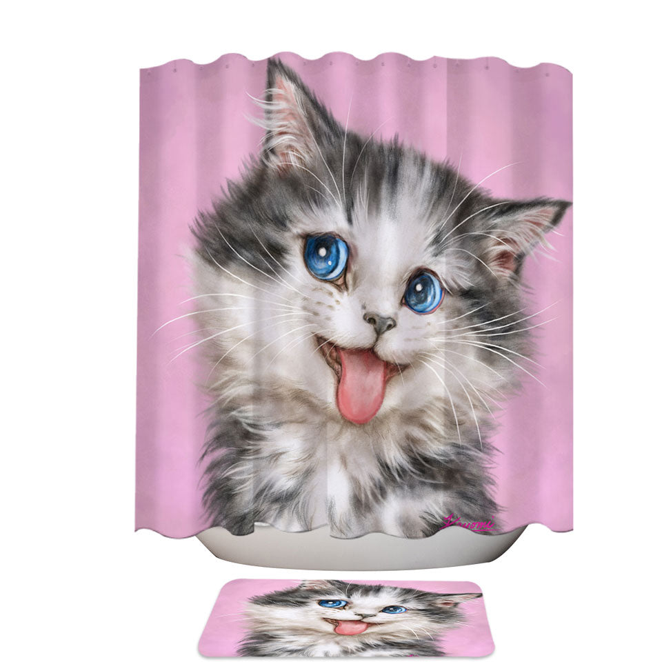 Beautiful Cats Blue Eyes Grey White Furry Kitten Shower Curtain