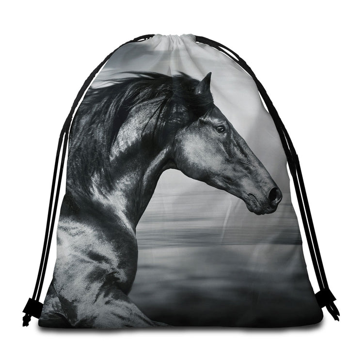 Black and White Photo Wild Horse Microfiber Beach Towel