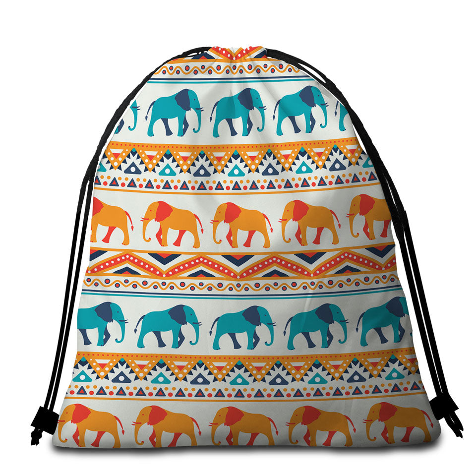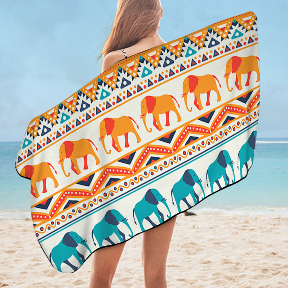 Blue Orange Elephants on African Design Microfiber Beach Towel